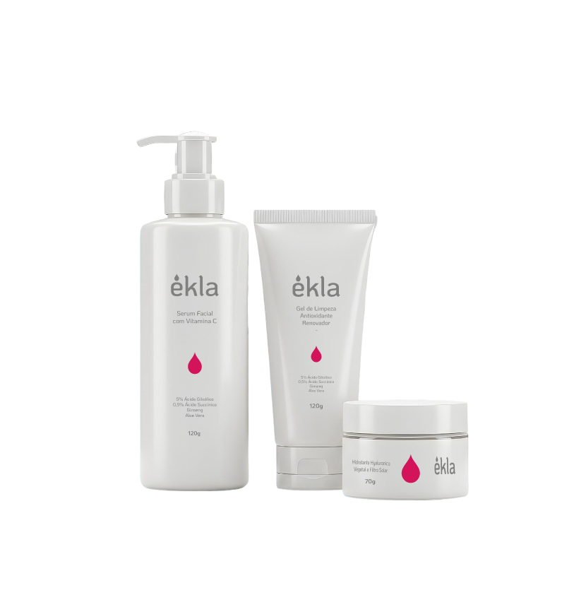 A Linha Essencial ÈKLA foi pensada para simplificar a rotina de cuidados faciais sem abrir mão de qualidade, eficácia e sofisticação. São três passos básicos, porém poderosos, que atendem às principais necessidades da pele no dia a dia: